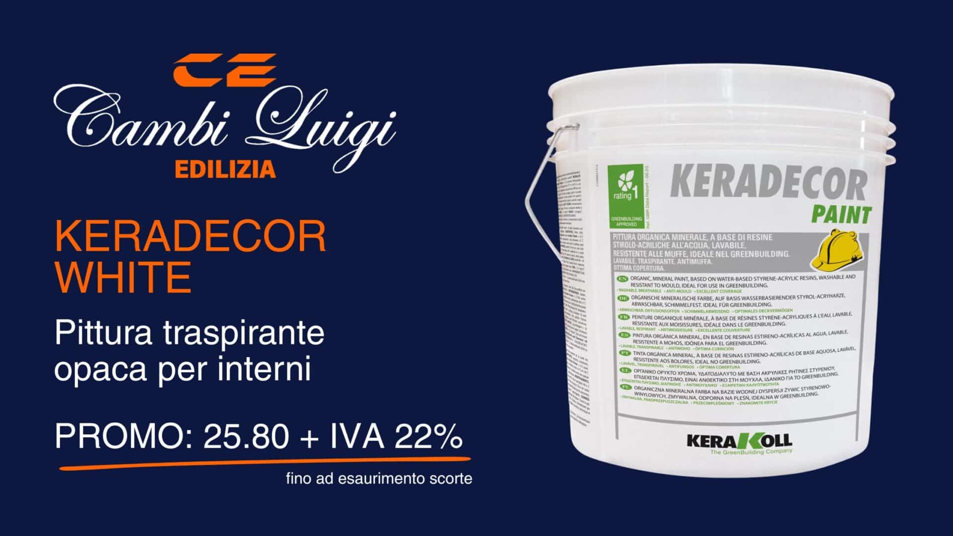 Keradecor White è una pittura traspirante per interni, riempitiva e coprente, con ottimo punto di bianco ed effetto molto opaco. Facile da applicare a pennello, rullo o spruzzo, è ideale…